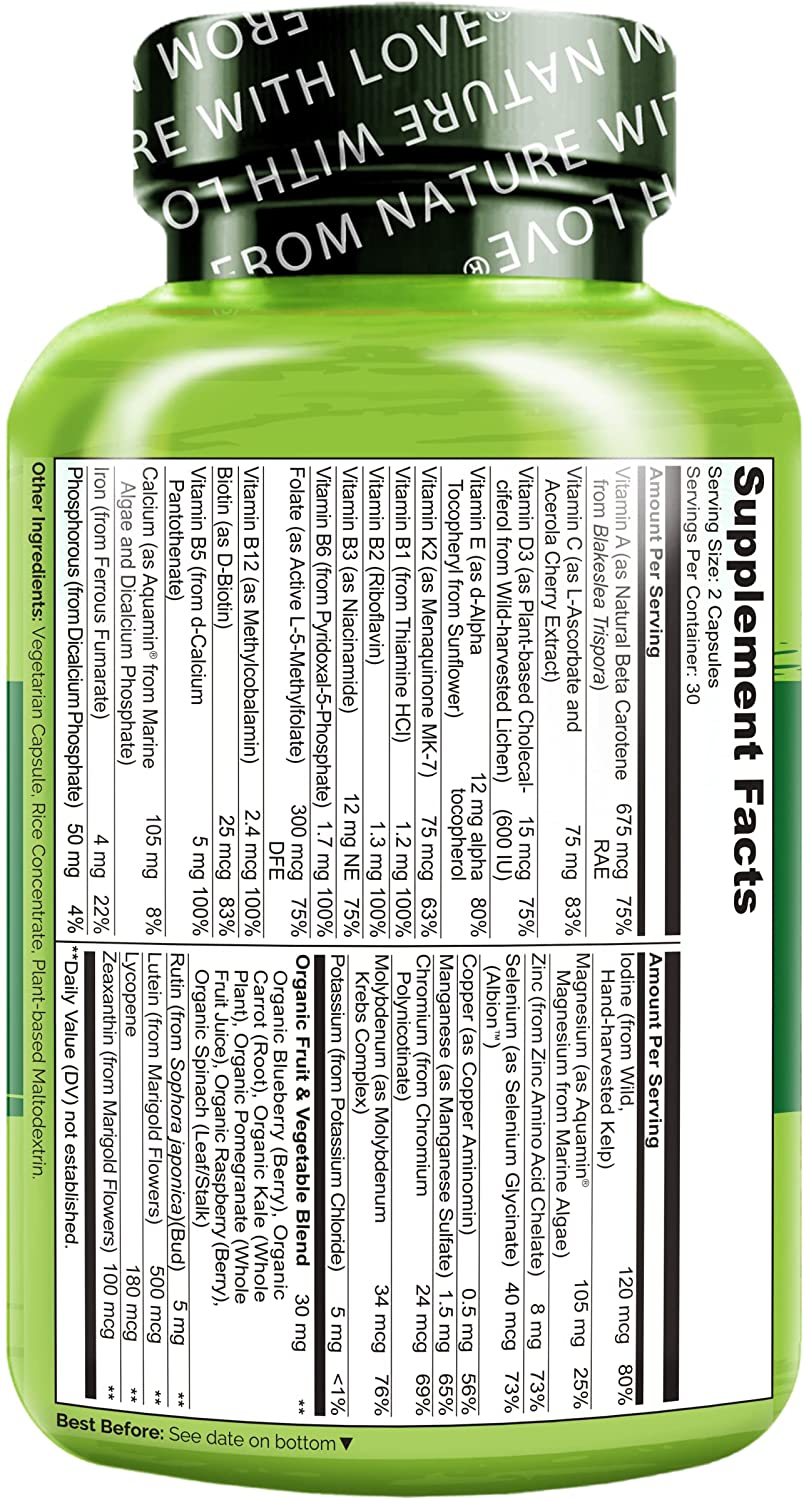 Naturelo Whole Food Multivitamin For Teens Vitamins And Minerals For Teenage Boys And Girls Supplement For Active Kids With Organic Whole Foods Non Gmo Vegan Vegetarian 60 Capsules Walmart Com